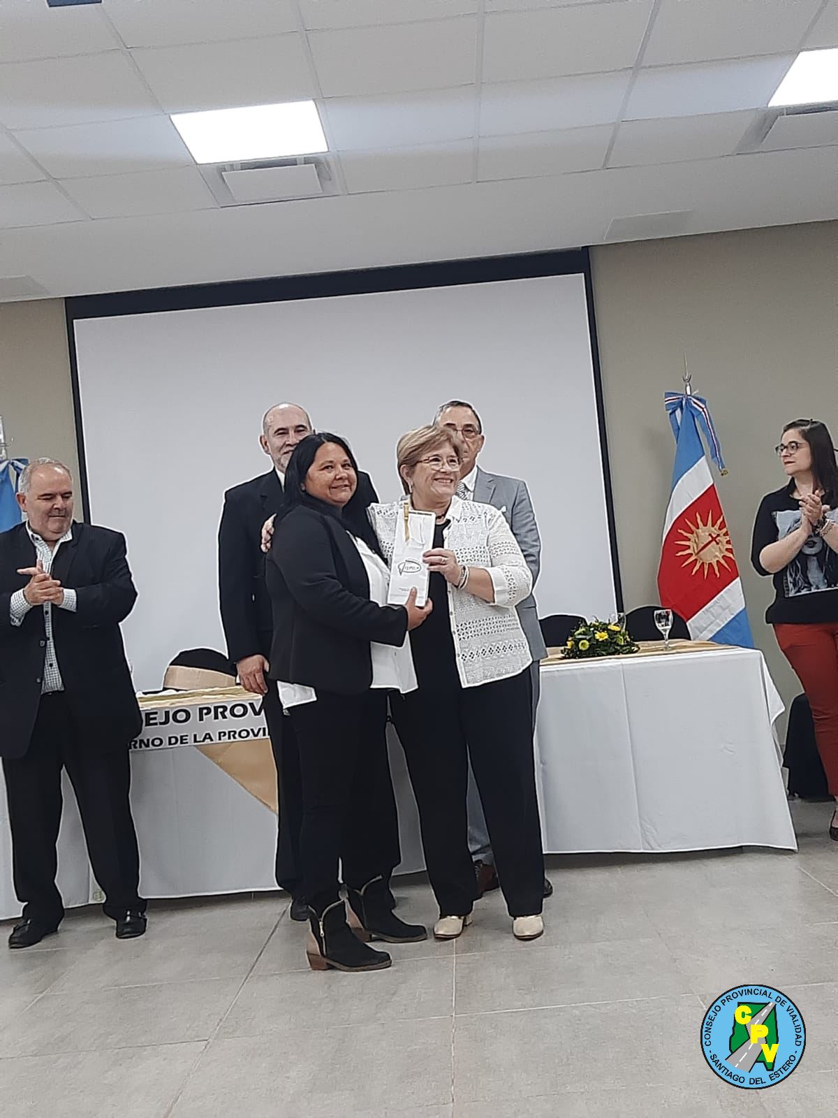 Acto del día Martes 04 de Octubre en instalaciones del Edificio del Cpv. Se produjo el Acto por el Dia del Camino, con entrega de medallas a los empleados viales que cumplieron 25 y 40 años de servicios, y representación artística del empleado vial cantante Carlos Vega, y la pareja de baile de tango también de dos compañeros viales Bety Lami y Santiago Gómez, con la presencia de autoridades del Organismo, autoridades del SIVIPSE, y del Gobierno de la provincia el Subsecretario de Obras y Servicios públicos Lic. Jorge Zuain.-