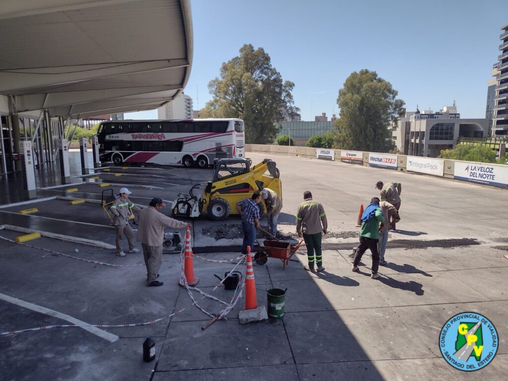 Se realizó el levantamiento de loza y bacheo en la plataforma Nun.11 de la Terminal de Ómnibus de la Capital de Santiago del Estero
