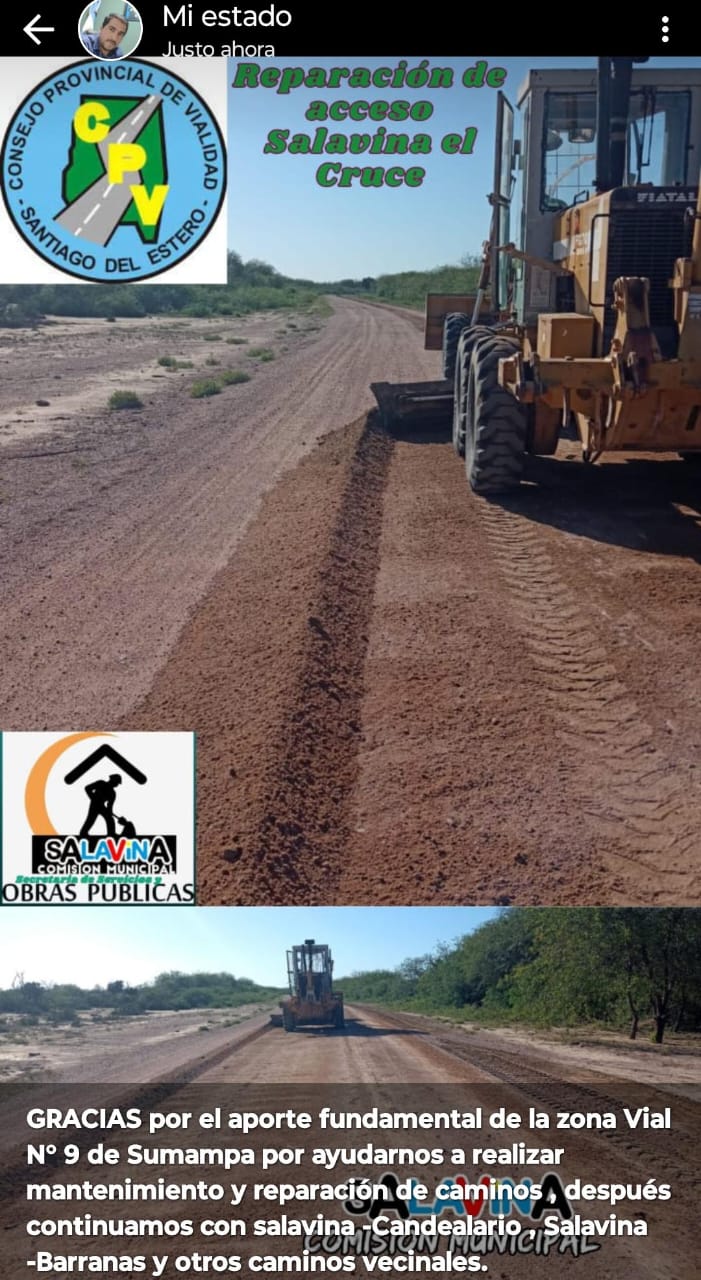 Noticias Trabajos realizados por personal de Zona Vial N.º 9 Sumampa: Por cpv 19 febrero, 2024 83 Cuota FacebookTwitterPinterestWhatsAppTelegramCopy URL Ubicación: Camino que va desde la Ruta 1 hacia Villa Quebracho. Longitud del camino intervenido: 16 kilómetros. Descripción de los trabajos: Detalles de las actividades realizadas en el camino, como mantenimiento, reparaciones, limpieza, perfilado, entre otros. Artículo anteriorTrabajos realizados por personal de la ZONA VIAL N.º 3 VILLA LA PUNTA durante la semana del 14 al 16 de febrero:Artículo siguienteTrabajos realizados por personal de Zona Vial N.º 7 Quimilí: DEJA UNA RESPUESTA Cancelar respuesta Comentario: Por favor ingrese su comentario! Nombre:* Por favor ingrese su nombre aquí Correo electrónico:* ¡Has introducido una dirección de correo electrónico incorrecta! Por favor ingrese su dirección de correo electrónico aquí Sitio web: Guardar mi nombre, correo electrónico y sitio web en este navegador la próxima vez que comente. Popular Institucional Situación de la red vial provincial y la crecida de los ríos en Santiago del Estero Noticias Video Informe sobre la Zona Vial 3 Villa La Punta Institucional Video Informe sobre la Zona Vial 1A en San Pedro, Departamento Capital Institucional Operativo de monitoreo en el puente «Paso de la Cina» y limpieza del cauce Institucional Visita e Inspección de Obras en Zona Sur Provincial Más noticias Institucional Situación de la red vial provincial y la crecida de los ríos en Santiago del Estero El Ing. José Herrera, Director de Conservación del Consejo Provincial de Vialidad, nos informa sobre el escenario de la red vial local y el... Noticias Video Informe sobre la Zona Vial 3 Villa La Punta Entrevista a Jorge Mues, Jefe de la Zona Vial 3 en Villa La Punta , quien nos cuenta las actividades que se desarrollan en... Institucional Video Informe sobre la Zona Vial 1A en San Pedro, Departamento Capital Entrevista a Ramón Lugones, Jefe de la Zona Vial 1 A en San Pedro, quien nos cuenta las actividades que se realizan en esta... Institucional Operativo de monitoreo en el puente «Paso de la Cina» y limpieza del cauce Ante el aumento del caudal de agua en la zona, el Gobierno de la Provincia activó un operativo de prevención y mantenimiento en el...