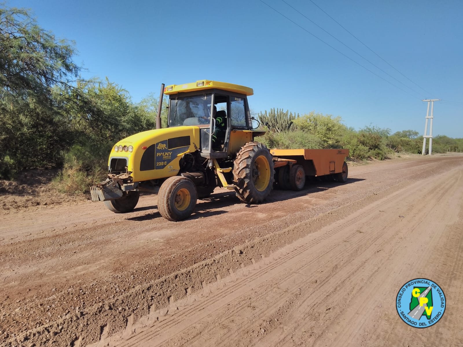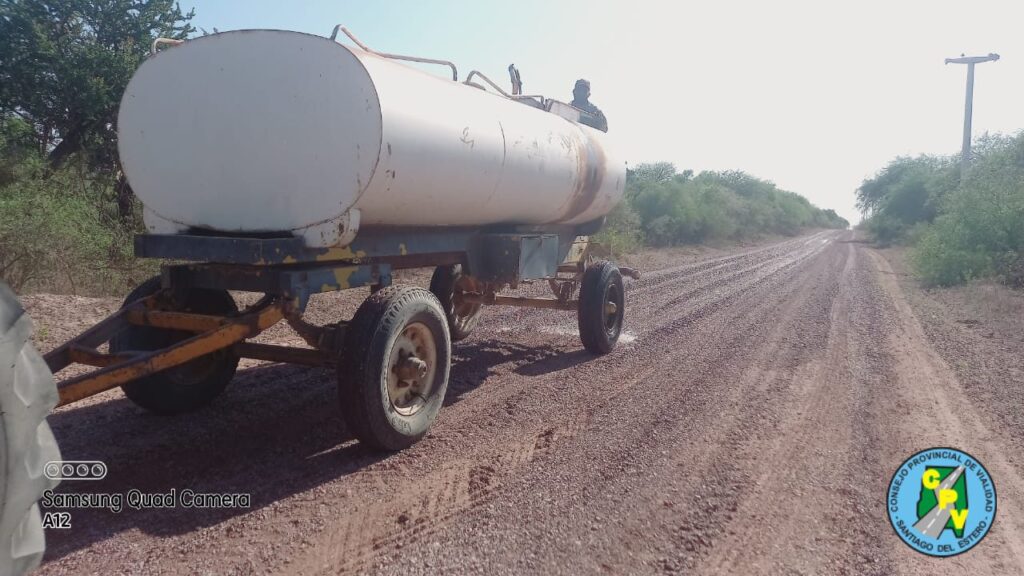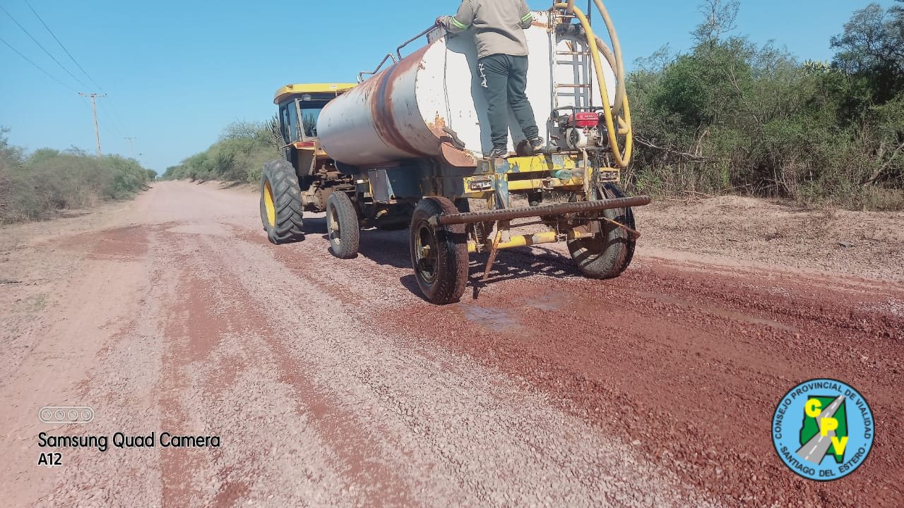 * Trabajos de limpieza, perfilado, riego y compactación en tramos del camino Perchil Bajo a Villa Nueva con colaboración de la comisión municipal de Villa Nueva en riego.-